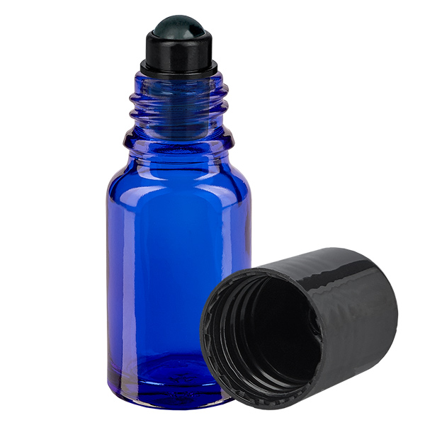 Egenskaper "10 ml roll-on-flaska med svart standardlock BlueLine UT18/10"