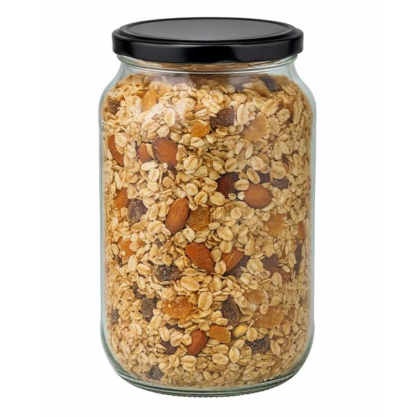 1062ml rund glasburk med BasicSeal-lock svart UNiTWIST