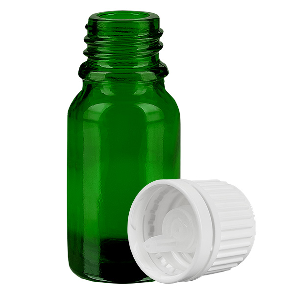Egenskaper "10ml Droppflaska 0.7mm vit med manipuleringssäkert lock GreenLine UT18/10"