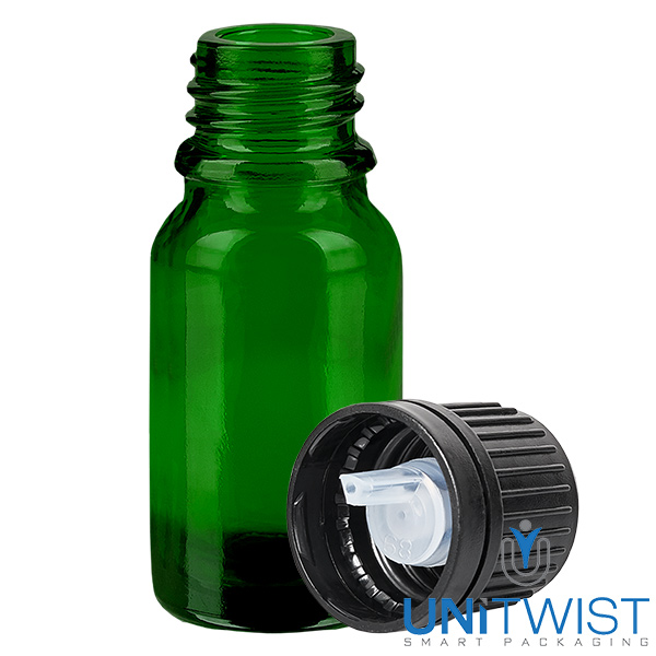 Egenskaper "10ml Droppflaska 1mm svart förslutning GreenL. UT18/10"