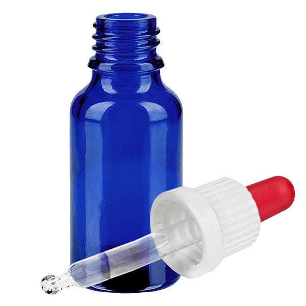 - Apoteksflaska med 18 mm gänga (UT18). Komplett med exakt passande glaspipett för droppnoggrann dosering.