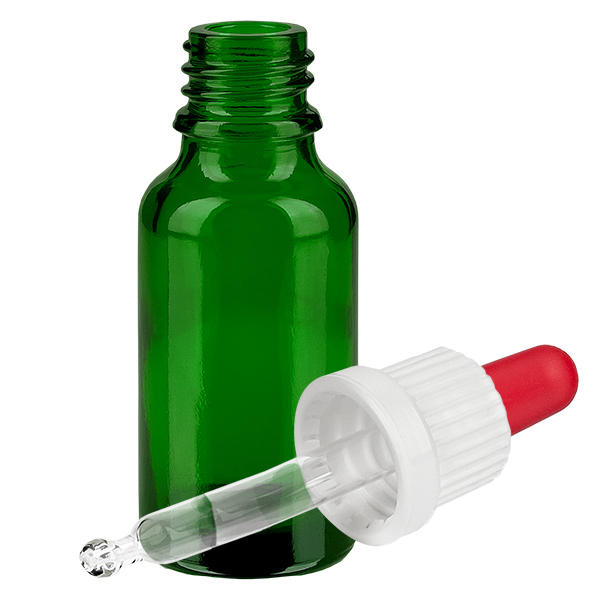 Produktinformation "20 ml pipettflaska vit/röd med säkerhetsförslutning GreenL. UT18/20"