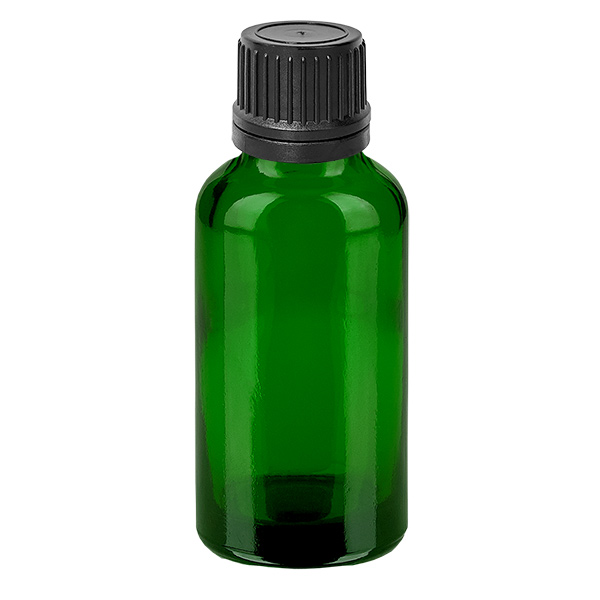 30ml Droppflaska 1mm svart med självhäftande lock GreenL. UT18/30