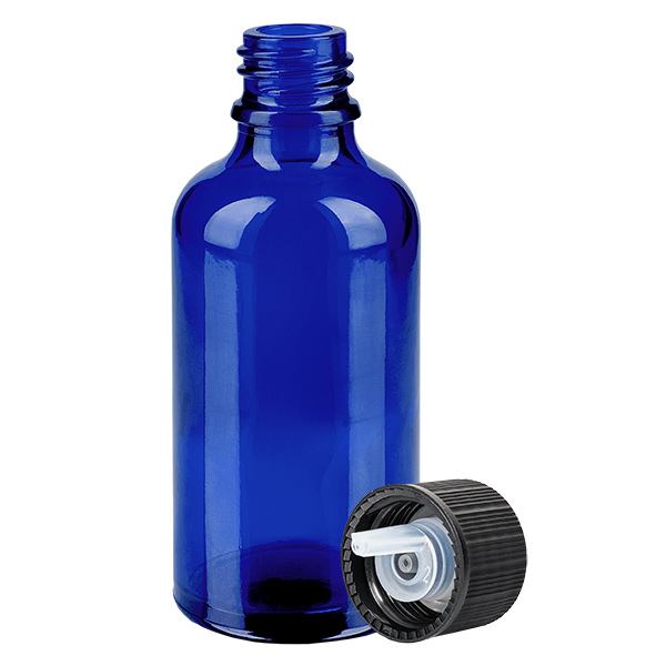 - Beskrivning av glasflaskan: Glastyp III (DIN 719 eller behållarklass III enligt DIN 52339-TO180). Det blå sodakalkglaset är smak- och luktfritt. Det är också kemiskt stabilt, vilket innebär att oönskade ämnen inte avges till innehållet. Du kan se burkens fyllnadsnivå. Innehållet är fortfarande skyddat från direkt UV-strålning. Detta säkerställer kvaliteten på ljuskänsliga produkter.