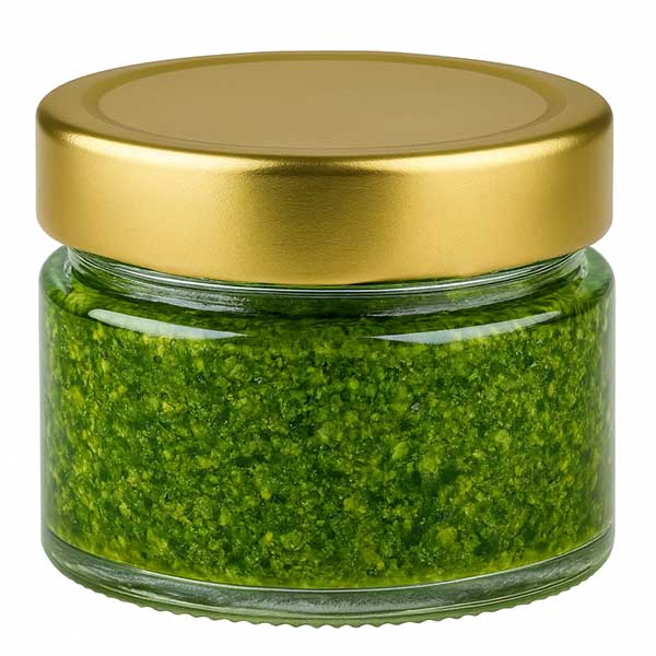 Rund glasburk 80 ml med lock BasicSeal guld djup UNiTWIST