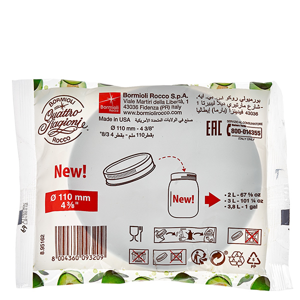 - Desinfektion: Alla Quattro Stagioni-burkar och lock kan steriliseras genom att spraya med upp till 96% alkohol.